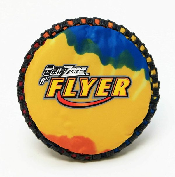 Grip Zone- Fun Gripper 6 Inch ( Mini) Flying Disc makes any game of catch more exciting and safe for young children to teach the fundamentals of tossing. The Grip Zone/ Fun Gripper comes in Three sizes 6″ small children . Then 9″ and 12″ for 7 years and up. Flyer have a impact absorbing Bean bag and Non -slip Grip Zone/ Fun Gripper edge. Grip Zone/ Fun Gripper Flyers is a soft flying discs that is packable . Fun for ages 5 and up. Easy to catch. Cool fabric pattern. Measures about 6 in. diameter Great Indoors and Outdoors back yard , beach or Pool. NOT RECOMMENDED FOR YOUR PET.