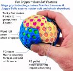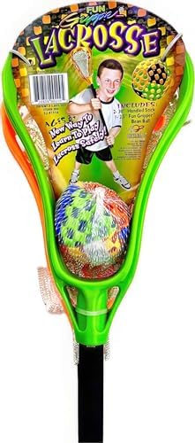 Comes with (2)-Fun Gripper 31 ” inch Lacrosse sticks w/ ABS shafts & (1)-Fun Gripper 2.5″ Bean Ball w/foam matrix foam grip covered, Fun Gripper 2.5″ Bean Ball w/foam matrix foam grip covered, Provides easy ball control and Handling. Ages 8 and up Item#209